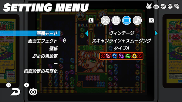 – In addition to normal and dot-by-dot modes, there is also a “vintage” screen mode with a CRT atmosphere and a “cabinet” mode that feels like playing at an arcade