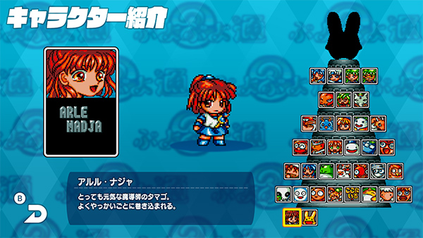 – Introductory text on the 30-plus characters that appear in the game, including Arle, Carbuncle, and more