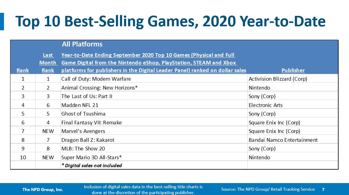 September 2020 NPD: Best-selling games on Switch, year-to-date, last 12 months