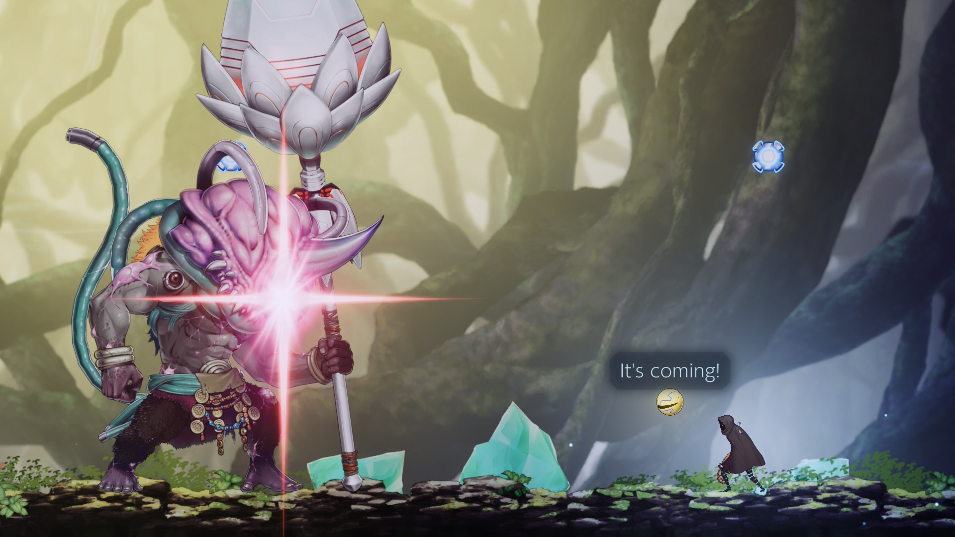 I also found the game’s art direction a bit bland, outside of a few segments in the game where things are dialed up to eleven. Because of how characters and enemies are animated, they almost look like paper cut-outs that are floating on top of the environments, rather than truly being a part of it. The world itself relies on a subtle parallax effect to create an illusion of depth, but this effect is often so understated that in most biomes it feels like there is no depth to the world at all. There’s a distinct lack of visual flair outside of boss battles, and because of how simple everything looks, the sense of atmosphere and mystery is weakened as a result. It’s not bad, just a little boring to look at on a regular basis. I had similar thoughts about the game’s music and UI design – not bad, just a little milquetoast.