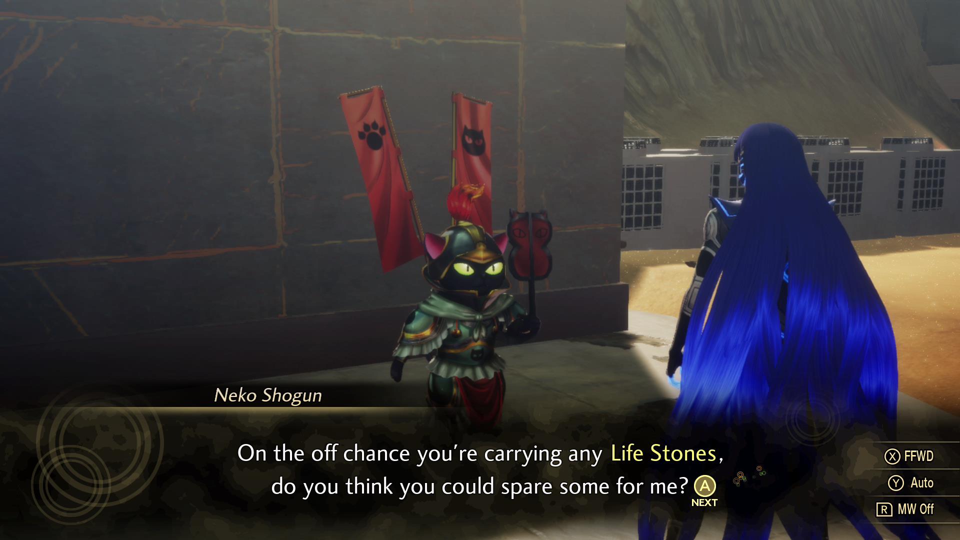 Sometimes, you’ll come across large statues of demons. They are said to be remnants of a war that took place over a decade ago. Touching them will increase allies’ levels.