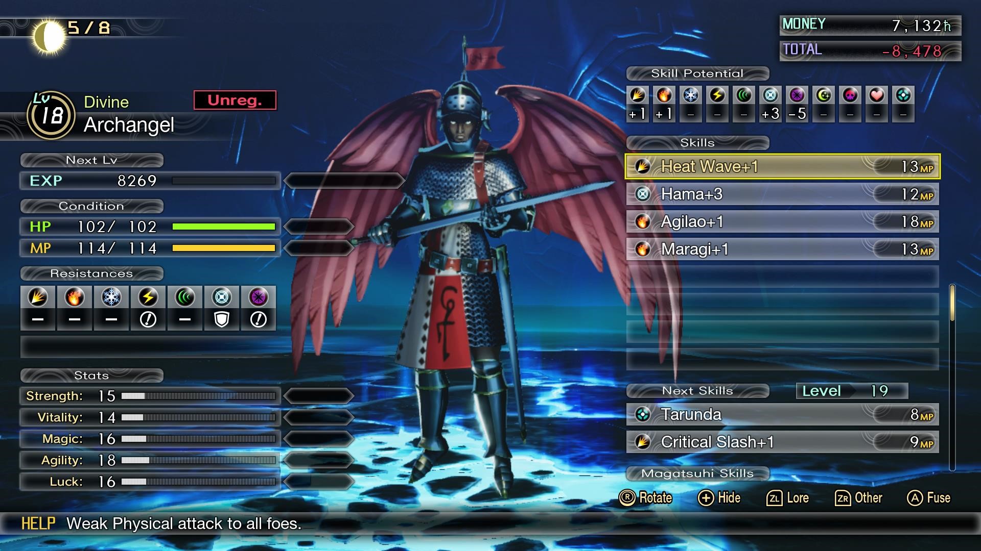 Demons all carry affinities and weaknesses. Skills that match their demons’ affinities become that much more powerful, marked with a “+” skill potentials. Conversely, inheriting a skill that matches a demon’s natural weakness leads to a “-” skill potential, making it less powerful. Strategically deciding between the damage you can deal vs the enemy weaknesses you can strike is key. Keep this in mind when creating your party, so you can choose demons that best fit your personal playstyle.
