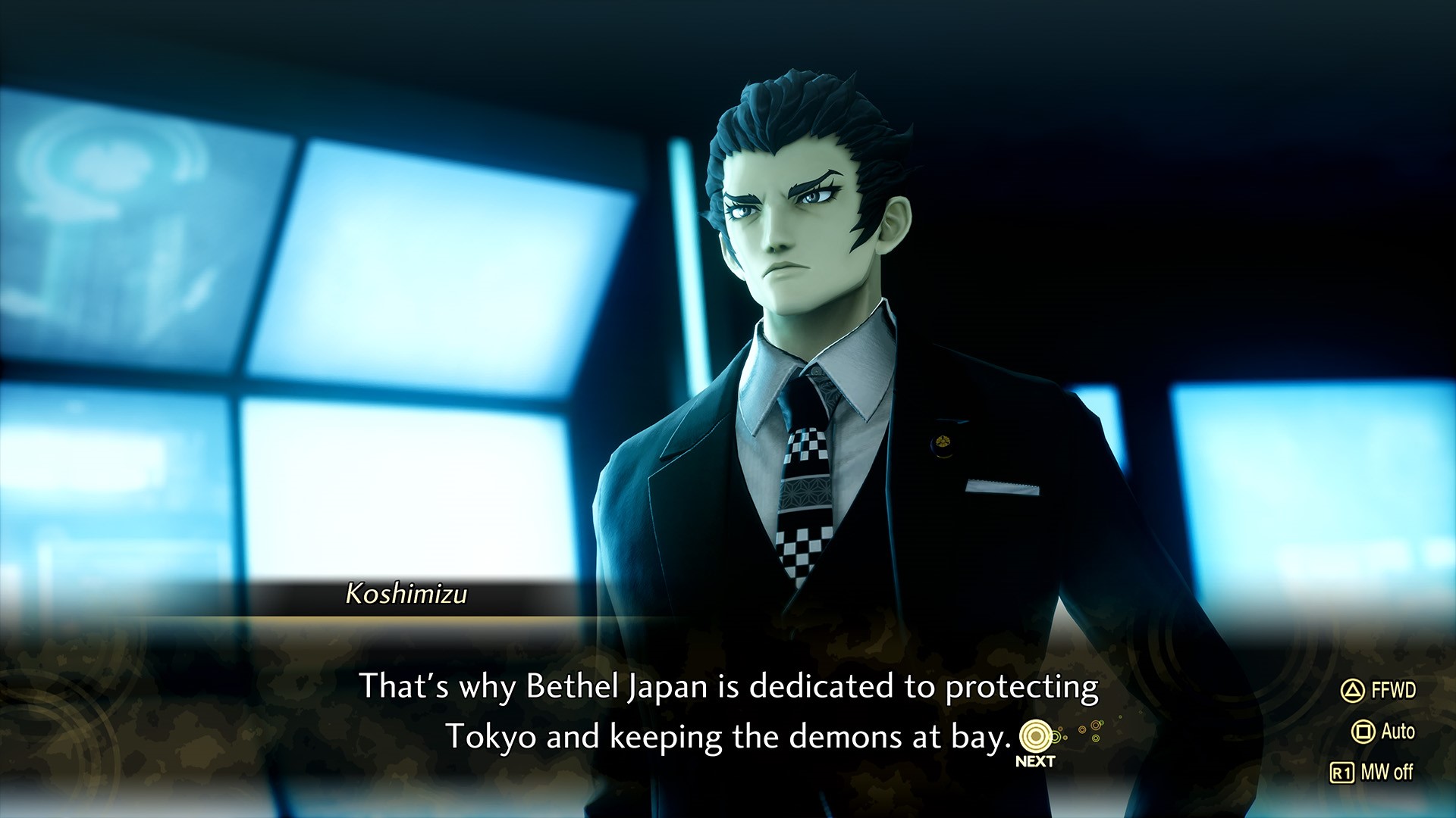 - Hayo Koshimizu (VA: Sean Crisden): Koshimizu is the Prime Minister of Japan, as well as head of Bethel’s Japan Branch. Calm, collected, and strategic. Recruits Ichiro and others to Bethel’s cause, giving them the Demon Summoning Program to aid in the war against demons.