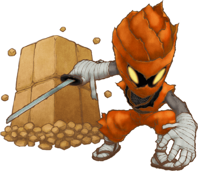 - Earth Ninja: Hides in earthen walls, then attacks. Pelts the target with sand, dealing damage and sometimes inflicting Blind status.