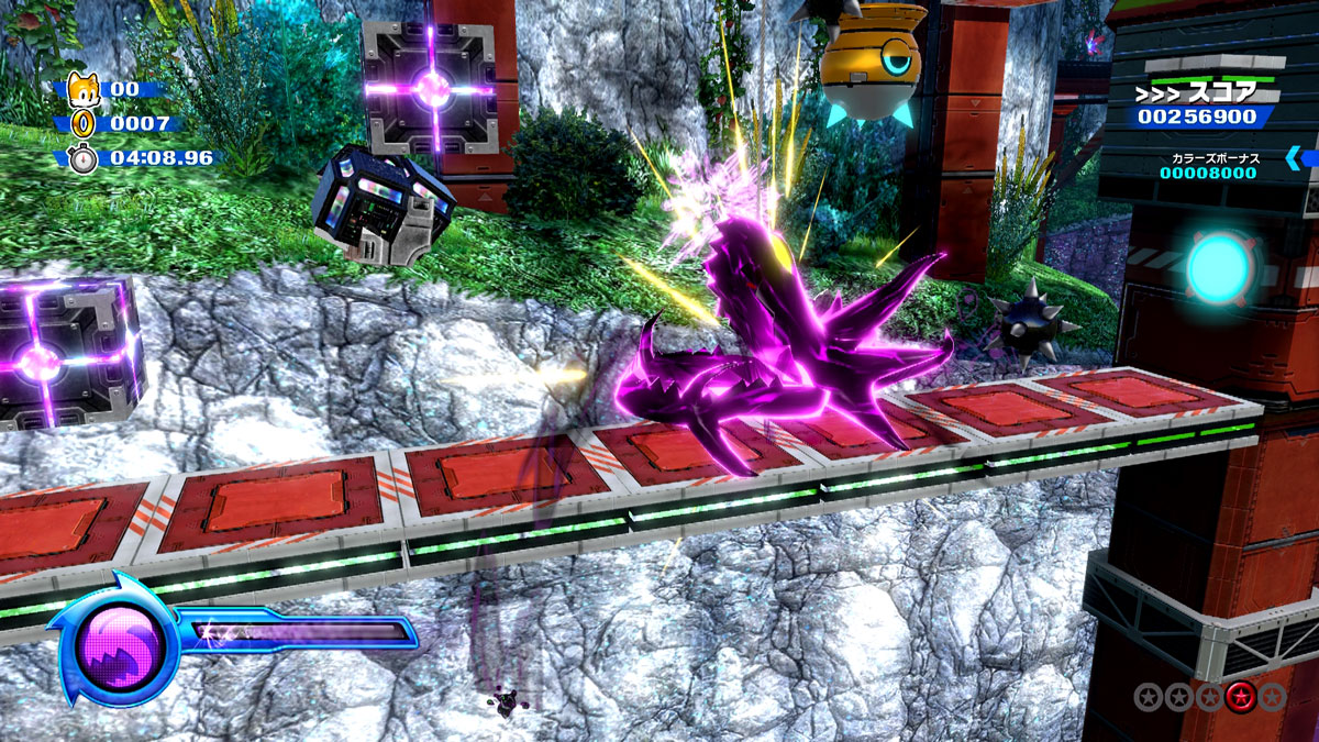 • Blue Wisp – Switch blue rings and blue blocks to open new routes, turn Sonic into a blue cube to stomp down enemies