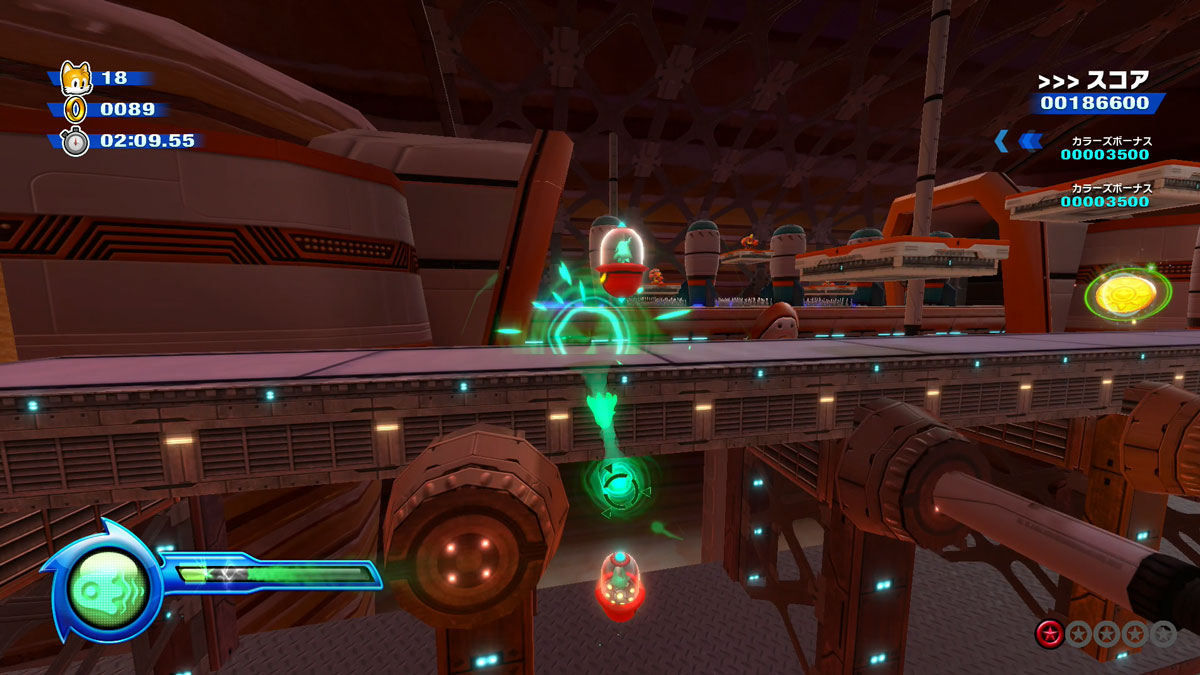 • Green Wisp – Transform Sonic into a green hover form to reach higher areas and float past treacherous obstacles