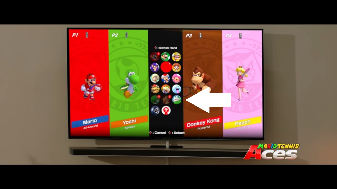 Towards the end of the video, we’re shown a family playing Mario Tennis Aces. And although it only lasts for a couple of seconds, we’re able to get a look at a character select screen. That screen contains a new playable character: Spike.