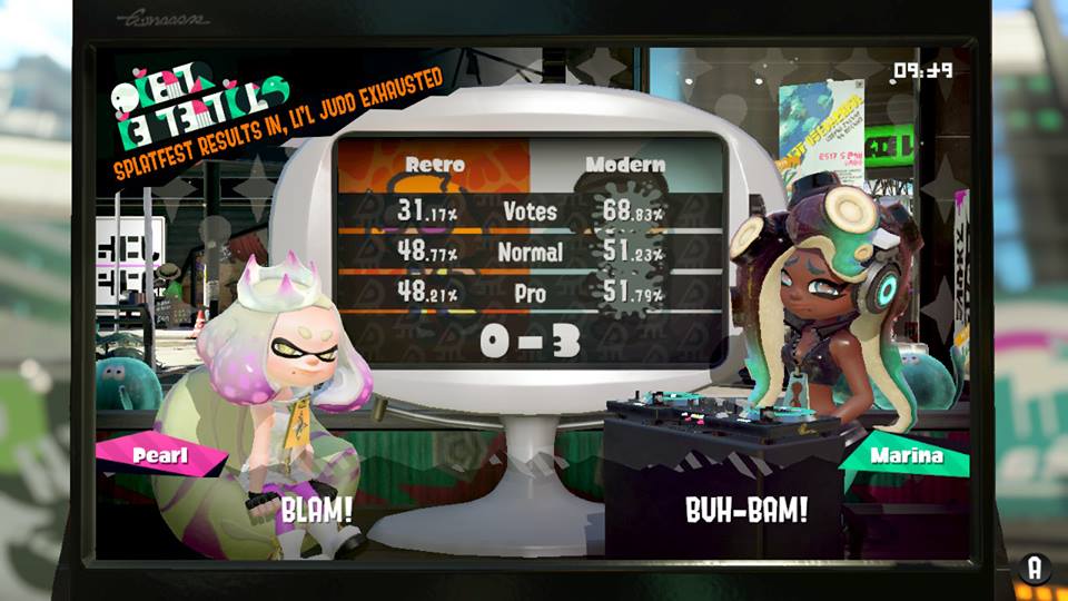 As for the latest topic, “Retro” and “Modern” teams battled it out. Nintendo has now posted the full results in-game, which we have below.