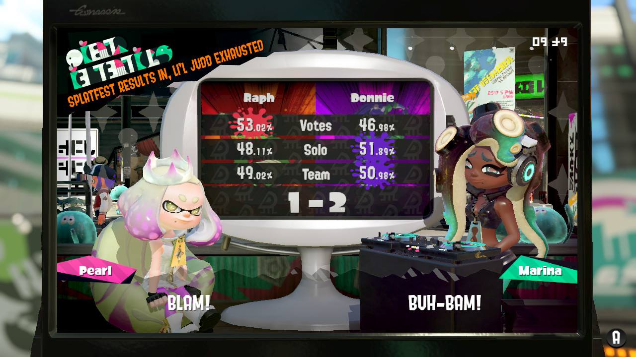 Splatoon 2 – Raph vs. Donnie Splatfest results (Teenage Mutant Ninja Turtles finals)