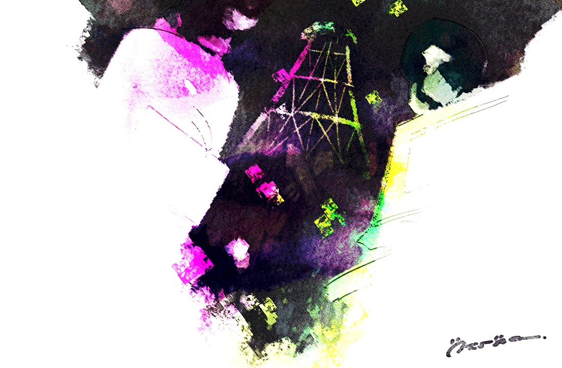 Twilight lowers its curtain on Inkopolis. Neon signs paint the dusk in brilliant shades of green and pink. The Squid Sisters dance on, as though driven by the Inkling love of battling for turf.
