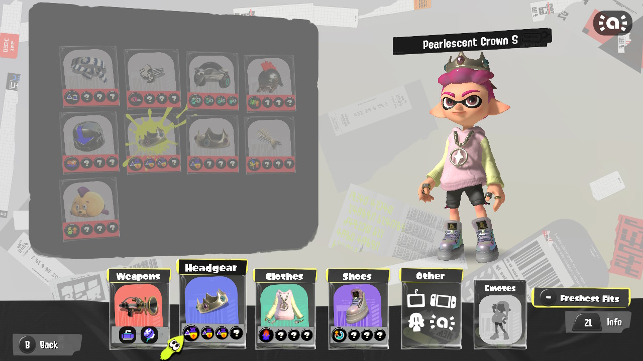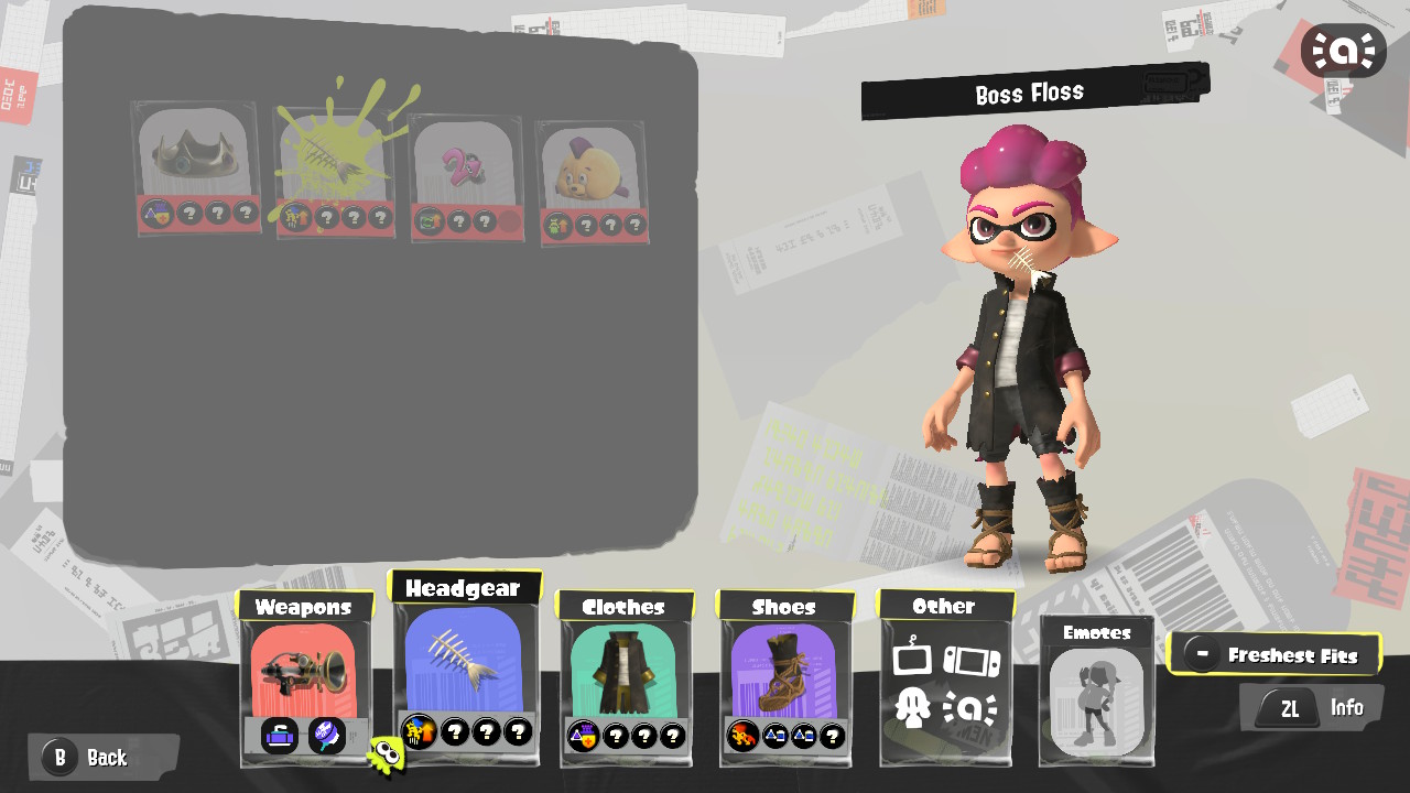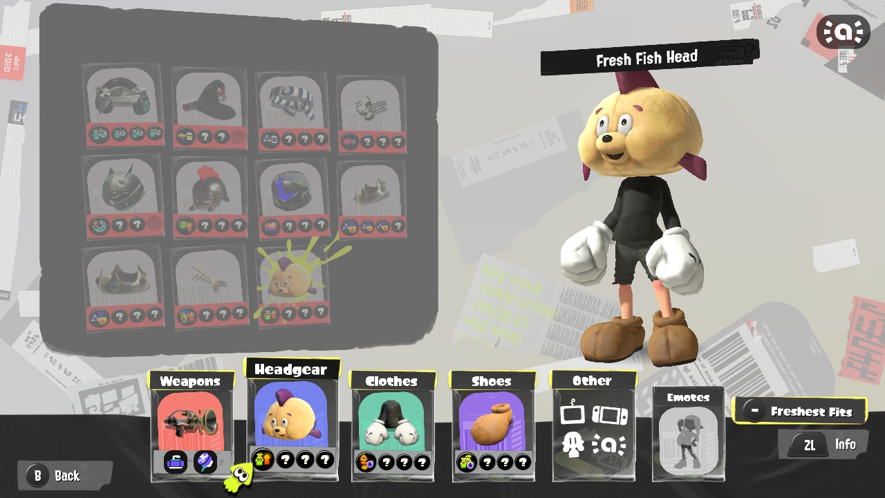 - Octoling Octopus (Pink) drops the most cursed set in the game — the Fresh Fish set. It resembles an old-time mascot, and there are three different pieces.