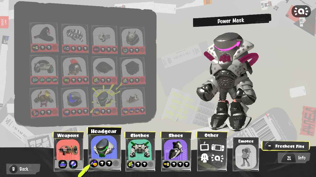 - Inkling Squid (Green) drops a high-tech set of power armor. There are three different pieces to this one, too.