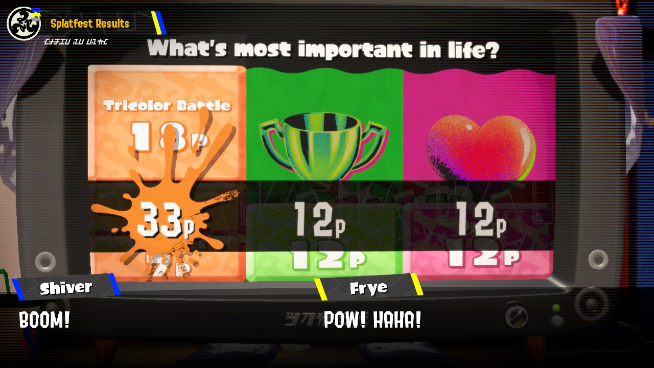 Splatfest #8 Results – Money vs. Fame vs. Love