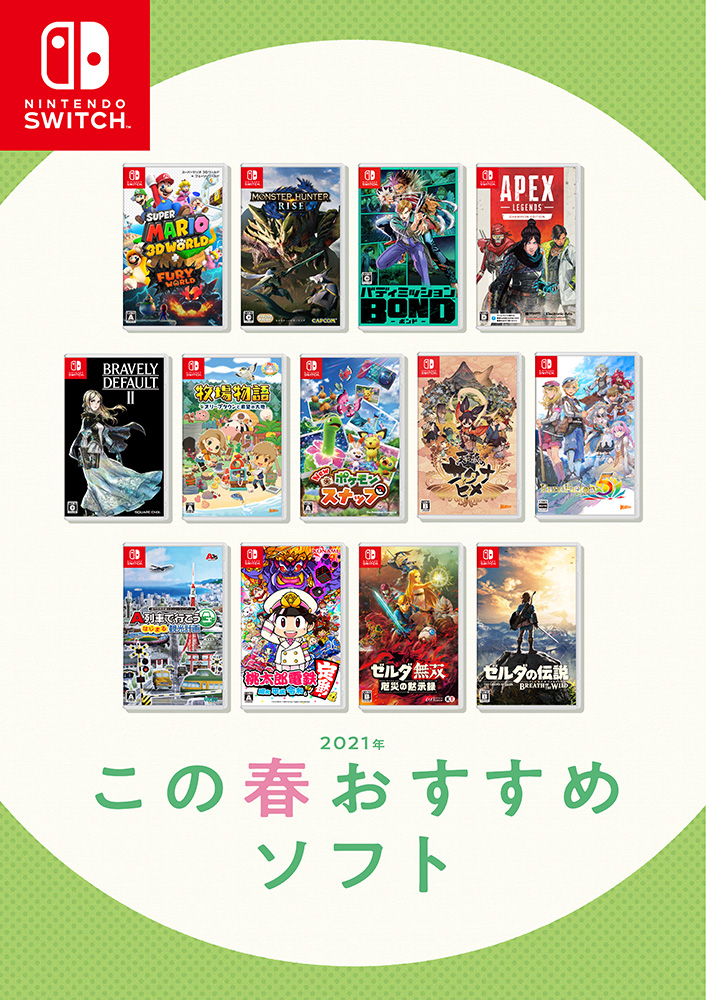 These are games that Nintendo is specifically advertising as “recommended software for this spring,” and its a pamphlet that will be distributed both digitally and physically in Japan.