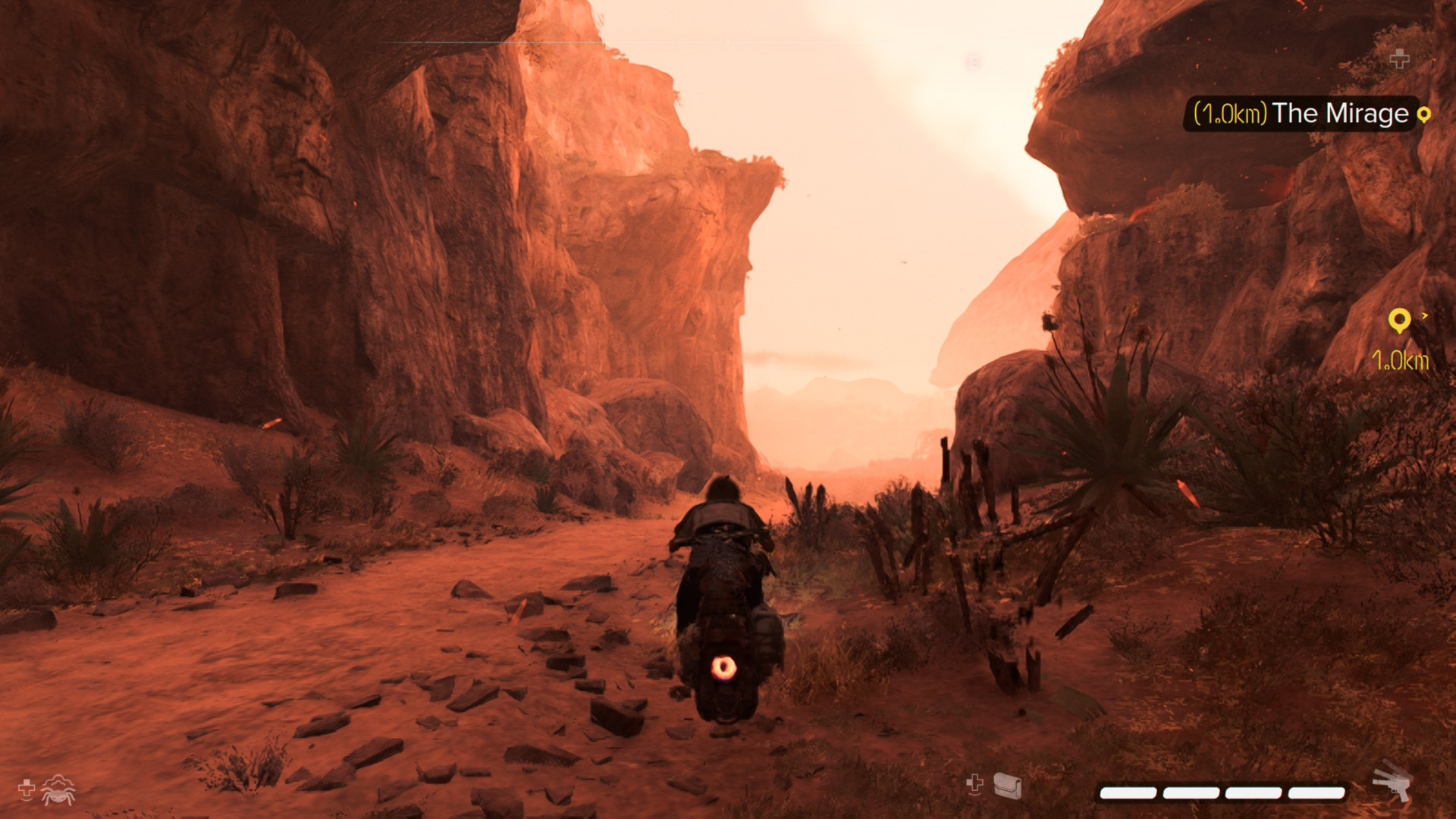 Immersion may be a buzzword in some circles, but it really is what Outlaws does best, I’d say. Yes, there’s a world map that will eventually have many icons on it denoting activities to complete, but it’s the act of exploration itself that creates these opportunities in the first place. Maybe Kay will overhear a conversation at a gambling parlor that will tip her off to a possible cache of valuable goods somewhere in the world. Or maybe a data pad sitting on a counter, easily glossed over, might lead to an enemy stronghold hidden in a canyon somewhere. Even the cat of upgrading Kay’s abilities feels surprisingly organic, because it’s centered in part around completing certain tasks for her connections, rather than just navigating a skill tree. This more organic sense of discovery, combined with a more subtle navigation system that never overwhelms the UI, really helped me get sucked into the game.