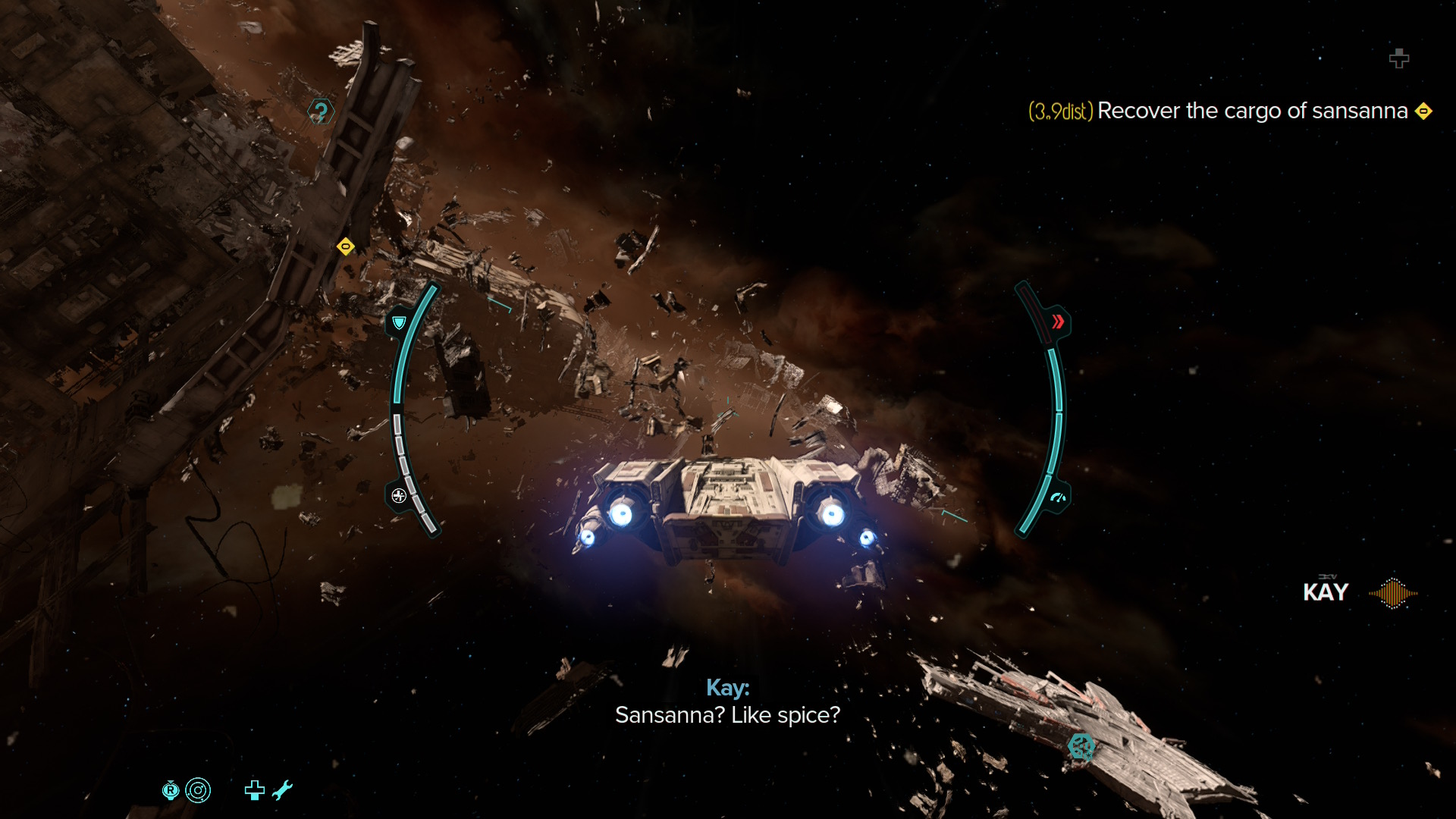 And of course, I’d be remiss if I fail to mention the fact that this game doesn’t limit the action to the ground. Kay’s totally-legally-acquired ship, the Trailblazer, is her gateway to the stars, and while the space exploration isn’t on the same level as something like No Man’s Sky, it still plays a pivotal role in the game’s flow. After Kay ascends from a planet, she’ll enter the space immediately around that planet, and there’s plenty to do here too, although certainly it’s not as fleshed out as it could be. Some of the best story missions take place in space, with Kay needing to sneak into an imperial ship or something along those lines, before making a daring escape in the Trailblazer when things go wrong. She’ll get into dogfights with TIE Fighters and roaming bandits, and stumble across faction-controlled space stations to infiltrate. She’ll fly through debris fields to recover loot and equipment for mercenaries back on the ground. And of course, she’ll jump through hyperspace to reach the other planets available in the game (once the story allows). Her ship may not be the fastest or the strongest, but it’s nimble, and flying it is intuitive with an easy-to-master dual stick flight system. I always looked forward to my time in space; even when I felt like I wasn’t discovering something, just the act of flying felt empowering and exciting.