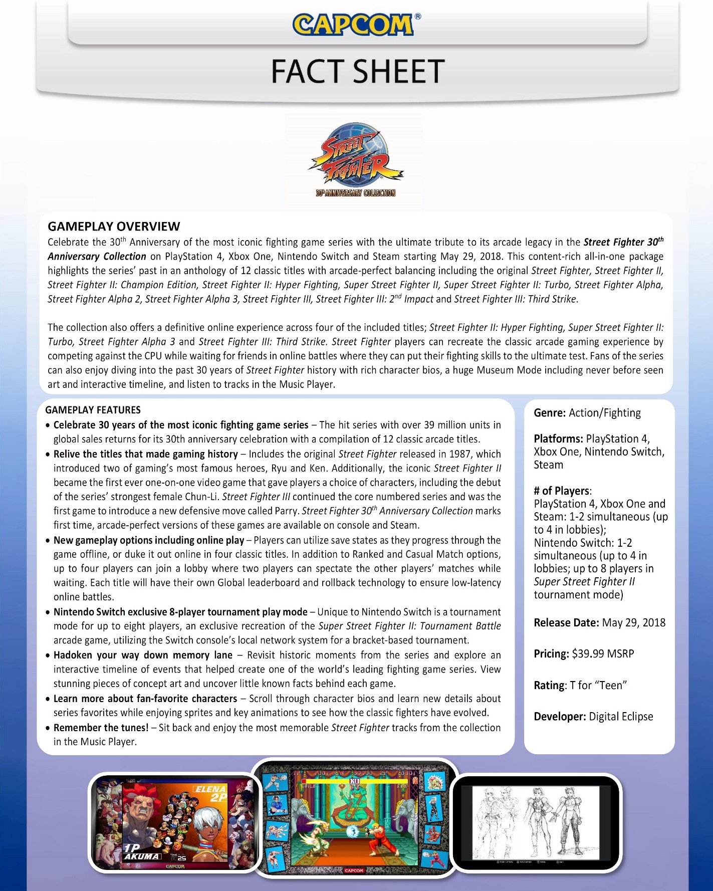 Street Fighter 30th Anniversary Collection fact sheet
