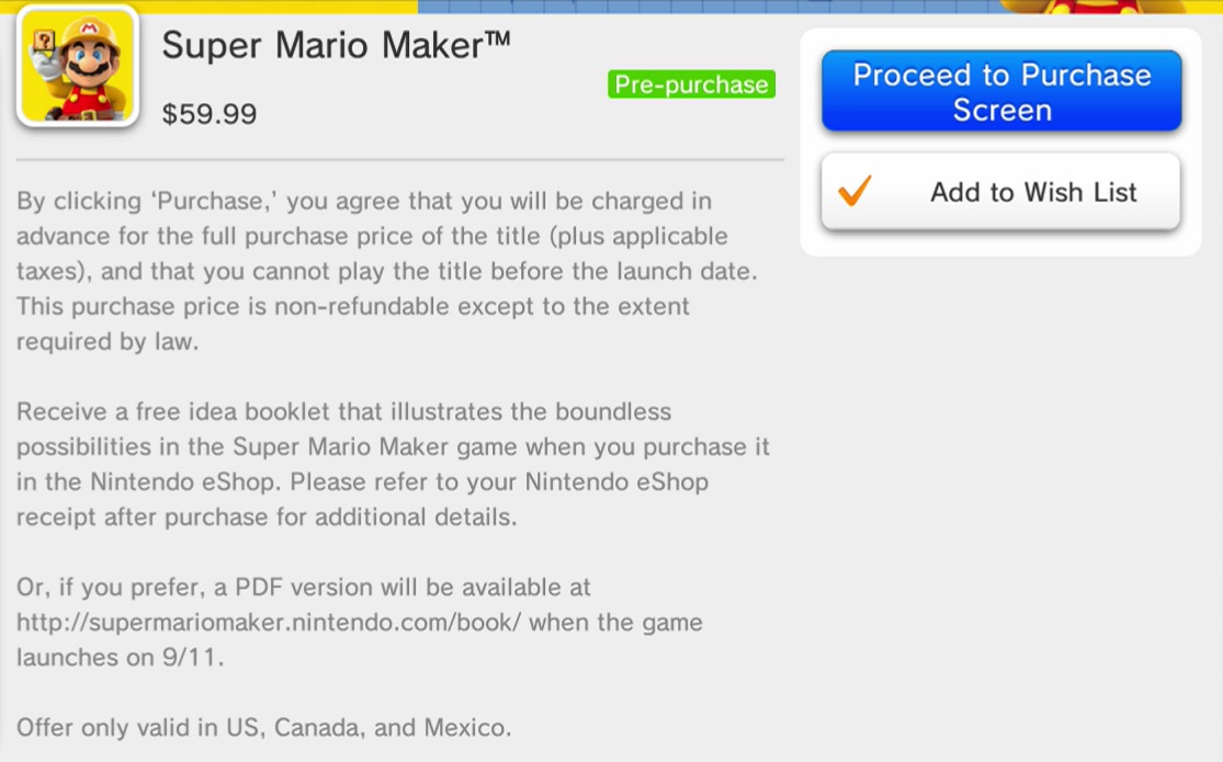 Super Mario Maker pre-load now live on the North American Wii U eShop