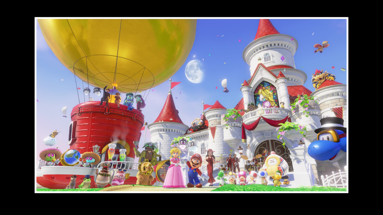 After you’ve nabbed every moon, you can take on Bowser again for a slightly tougher boss fight in the Moon Kingdom. He’ll have a new painting inside the wedding chapel. If you defeat Bowser here, after the credits roll, you’ll get a thank you message from Mario as well as a special postcard with the game’s cast.