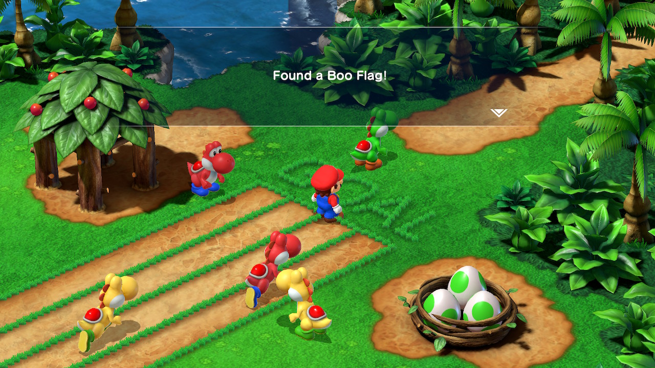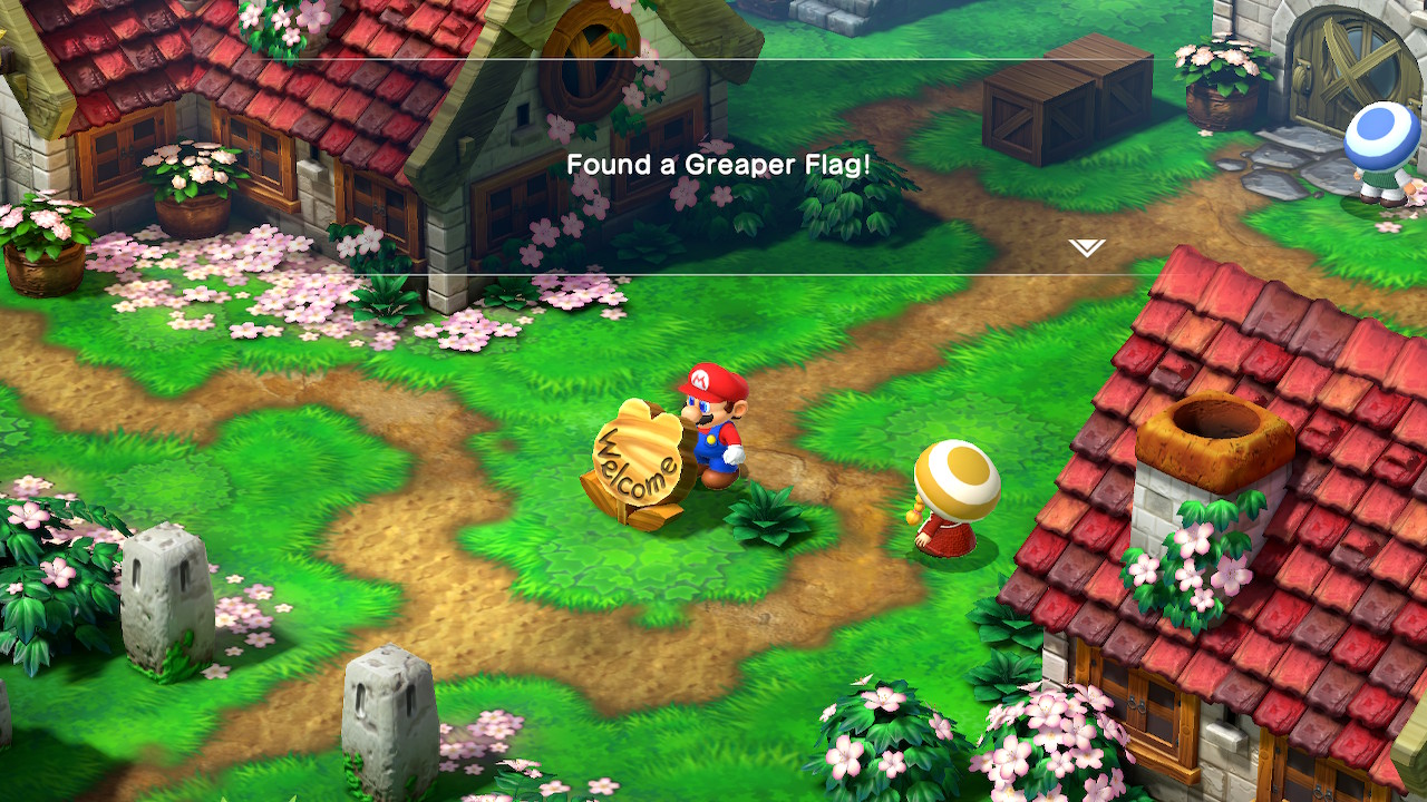 We’ve included a gallery above of all three flag locations. Here’s a bit more info, though: the first flag is under the bed inside Mario’s Pad. The second flag is hidden between the “O” and the “A” of the “GOAL” text at Yo’ster Isle, while the third flag is behind Rose Town’s welcome sign. It’s important to note that Yo’ster Isle is an optional area, and you can only get there by making your way through the Pipe Vault. Fortunately, you can get the 3 Musty Fears flags easily by pressing Start and skip traveling to all three locations via the Map function. You couldn’t do that in the original game!