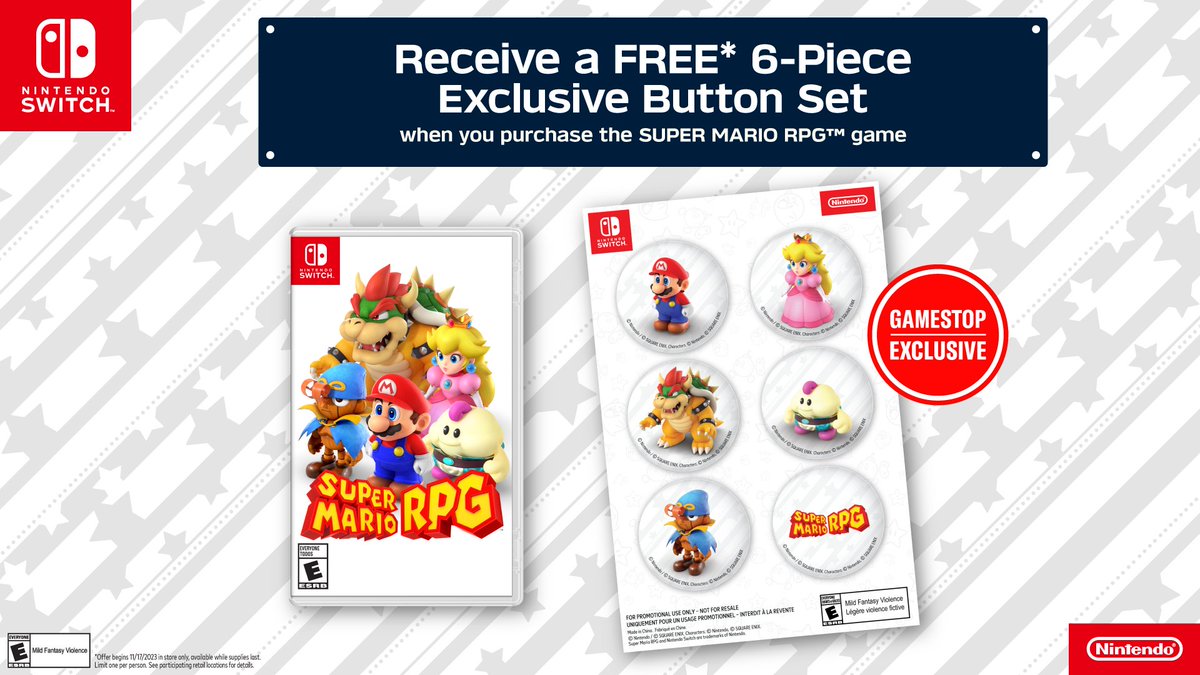 It’s apparently not a pre-order bonus, but those who purchase Super Mario RPG at launch will receive the button set pictured above. You can also head on over here to reserve the game online.