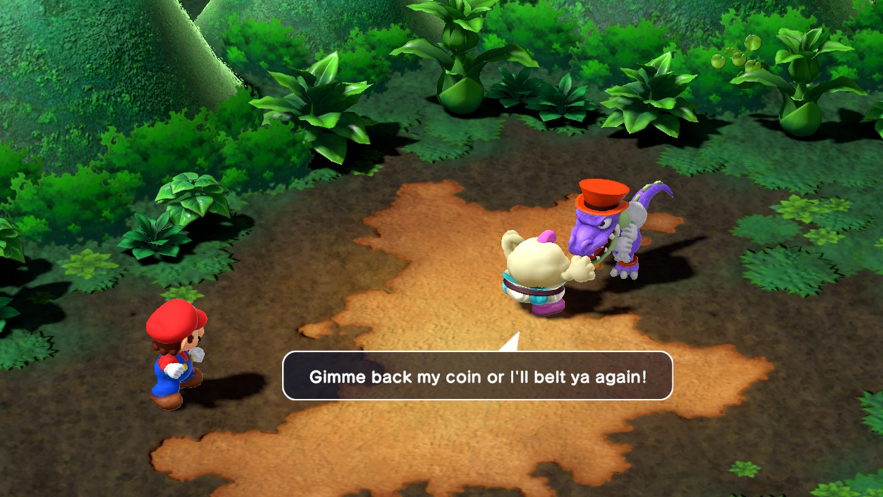 In addition to the turn-based combat that is the backbone of these sorts of RPGs, Mario and his party can also find, buy, and equip various weapons along with armor and accessories. These items will help round out each characters stats for battle, with Mario being a more offensive character and focusing on physical combat. Players will want to play each character to their strengths, which being smart about equipment will really help with. Magical attackers and high defense characters will also exist in the party as you journey forth. Mario’s first new friend is Mallow, a strange looking “frog” creature that you meet in the Mushroom Kingdom on your very first visit. You encounter Mallow in his attempt to get back a stolen item by a local thief named Croco. Deciding to help out in getting the item back, the player will have Mallow join the team from that point onward.