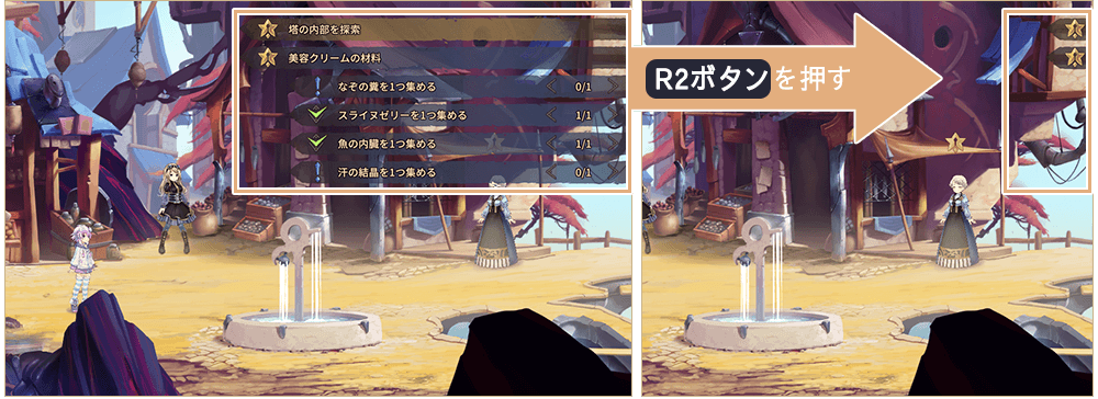 – You can pull up and hide the navigation that displays the Quest objective with the press of a button