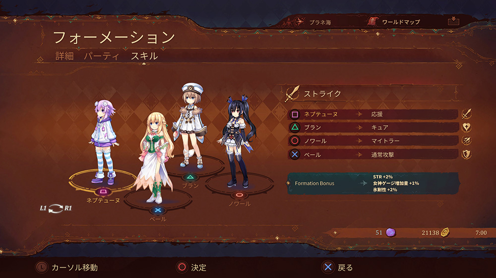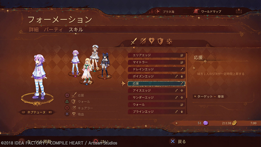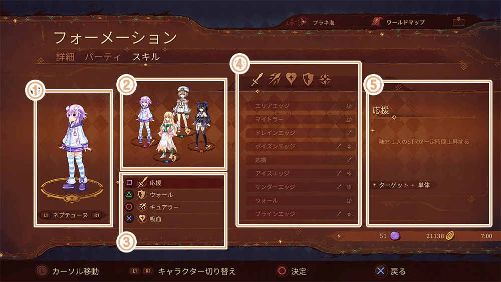 – Skills for Strike Formation, Magic Formation, Heal Formation, Support Formation, and Mix Formation
