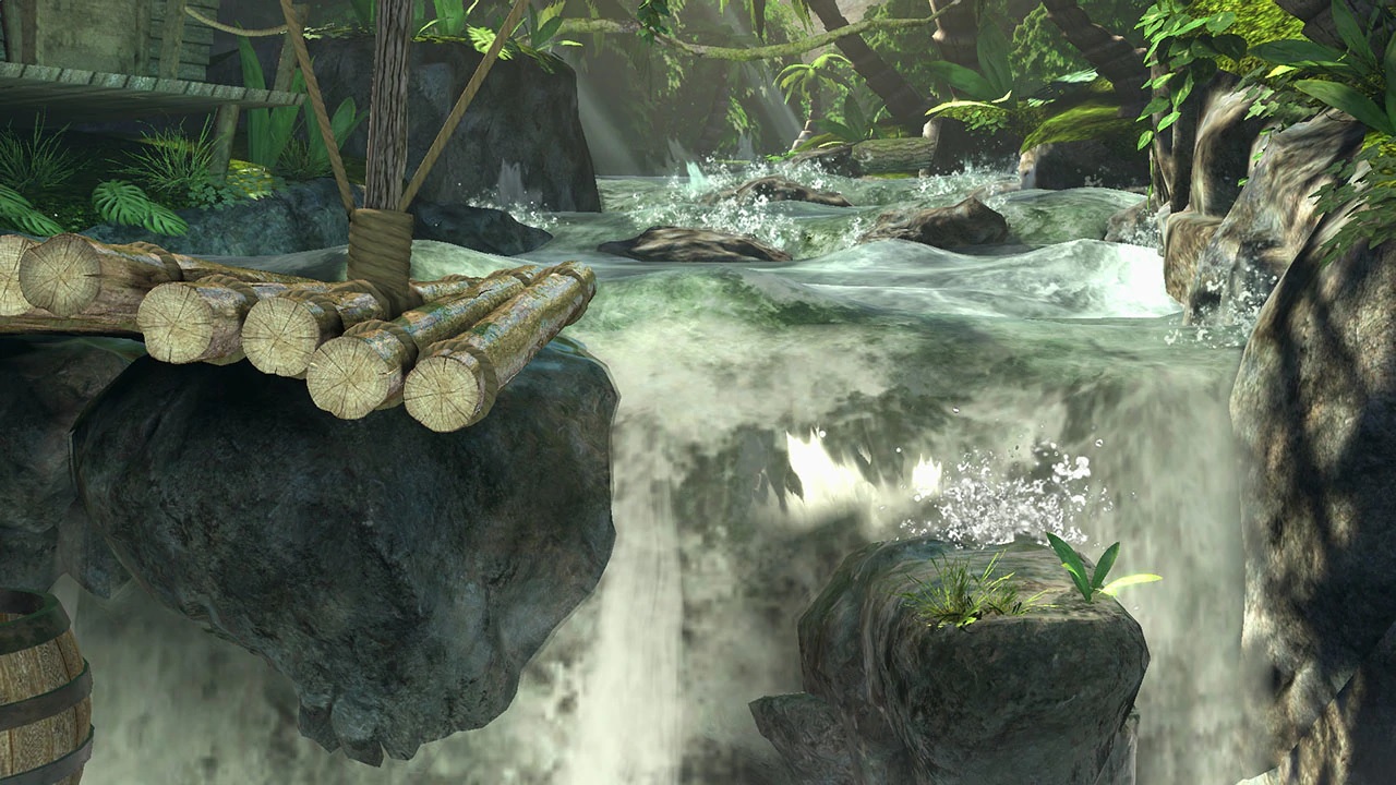 Face off against your foes atop a raft stuck at the edge of a waterfall. How well you utilize the rock jutting out at the bottom right can be the difference between victory or defeat!