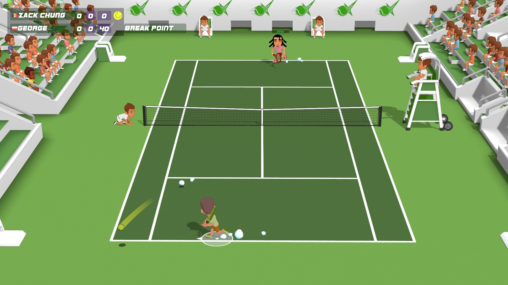 Unlike the AAA sports games, based on realism and aimed to visually sim the main sports, Super Tennis Blast is inspired by the old-school arcade classics, with its fine-tuned gameplay and direct mechanics. Plain fun where teamplaying is the key to achieve victories. Good positioning in the court, communication and skills will decide the winner.