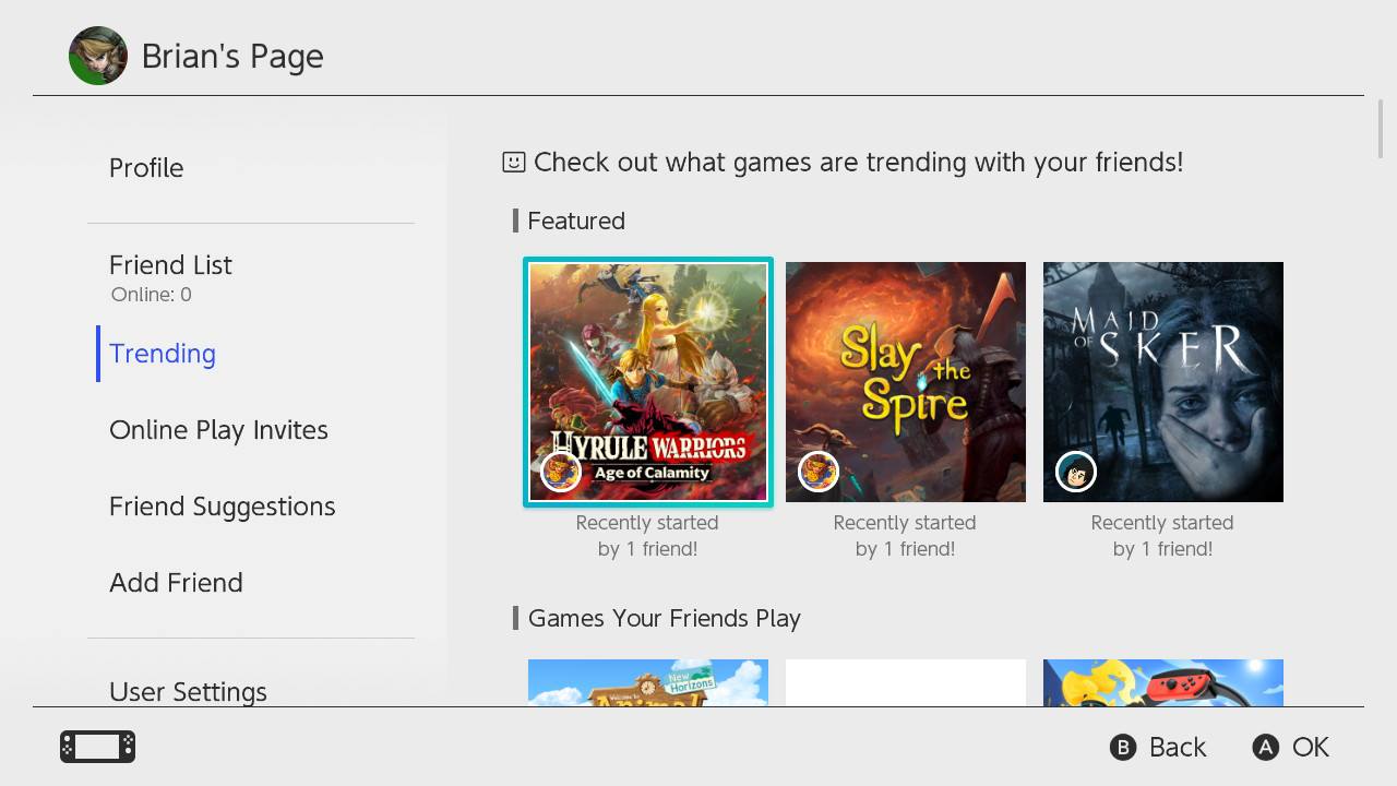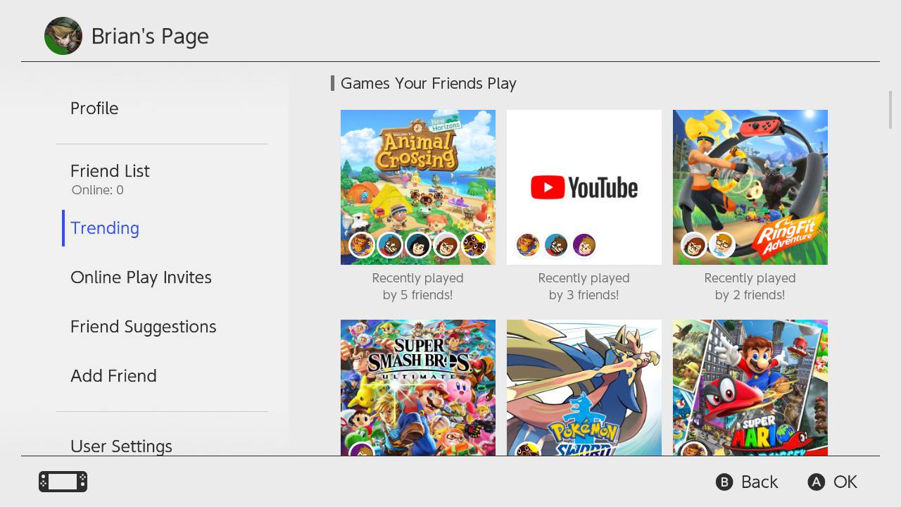 *A Nintendo Switch Online membership is required to use the Save Data Cloud service.A new Trending feature was added to the User Page.
