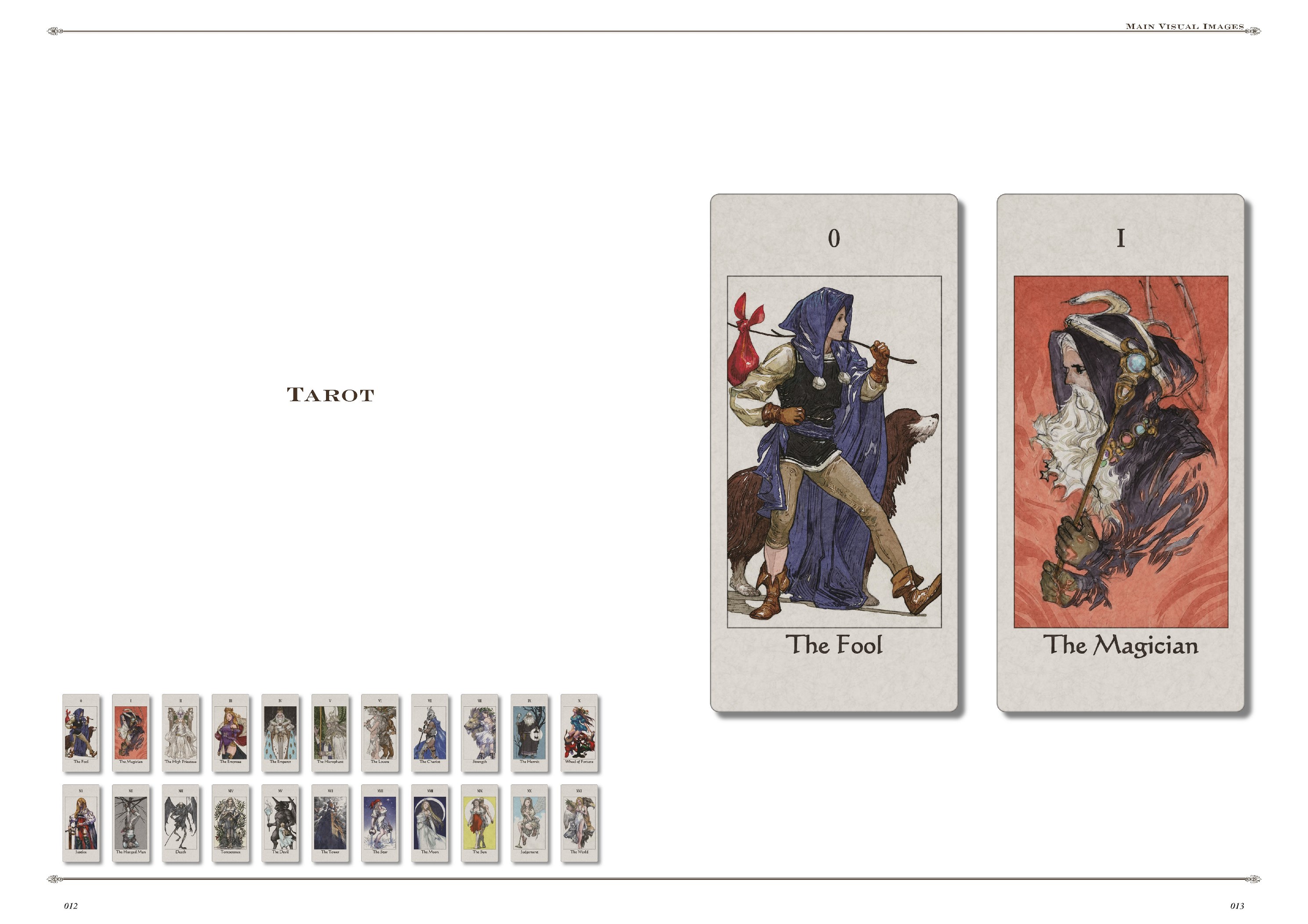 The book features over 200 full-color pages of character art and rough sketches, tarot card designs, background art, pixel art, illustrations, and more. It also has high-quality printing on heavy art stock, a five-color preprinted case, frosted PVC jacket with gold foil-stamping, and dyed endpapers.