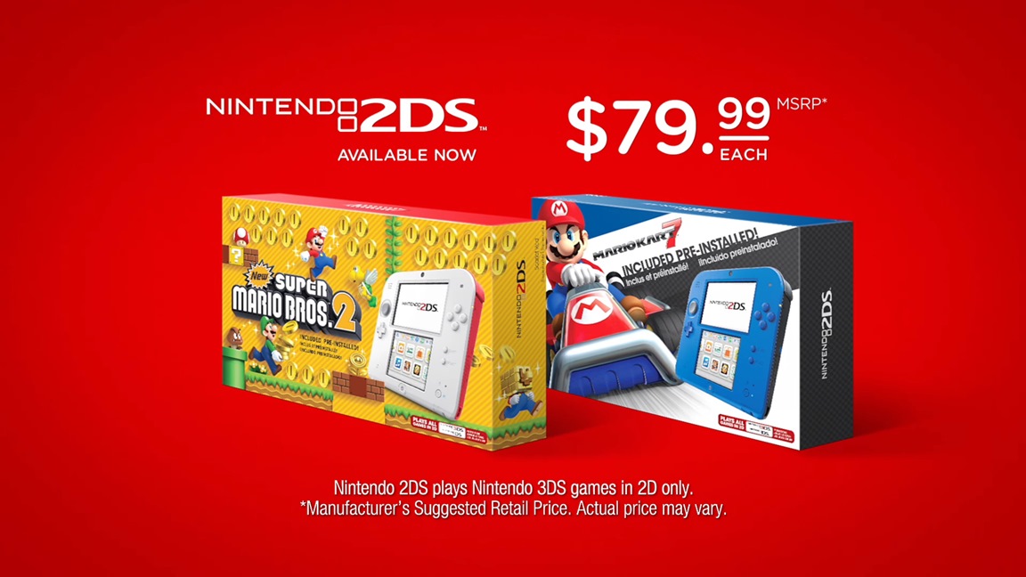 This summer, Nintendo will be offering the 2DS Electric Blue system. Aside from the color difference, there are no other changes. This one also comes with New Super Mario Bros. 2 and will be sold for $79.99.
