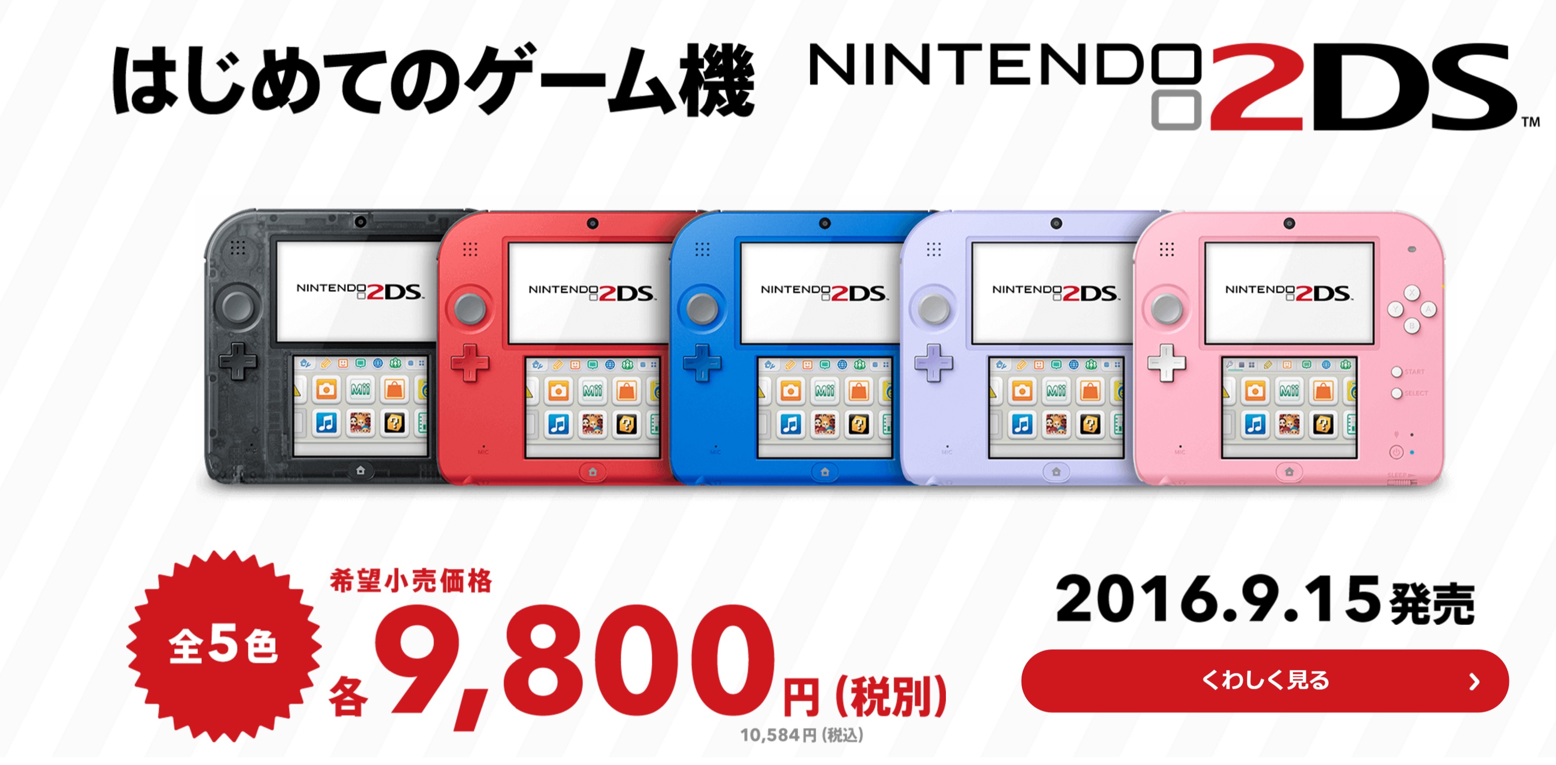 Nintendo is preparing a new set of 2DS colors for Japan. On September 15, the designs pictured above will be available. Pricing is set at 9,800 yen each.