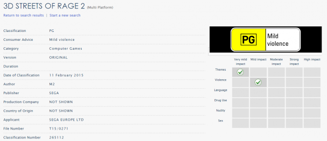 3D Steets of Rage 2 doesn’t seem exist yet. That’s why it’s peculiar how the game has been rated over in Australia. Could 3D Steets of Rage 2 be happening at some point?