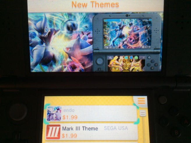 Nintendo didn’t mention it in its digital downloads report today, but a couple of new 3DS themes have been added in North America. System owners can now purchase Pokemon: Mega Mewtwo and BREAK Evolution as well as the Mark III Theme from SEGA. Each one costs $1.99.