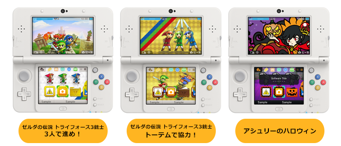 A bunch of new 3DS themes are out now in Japan. These include ones based on Zelda: Tri Force Heroes, Ashley from WarioWare, Adventure Time, and more.