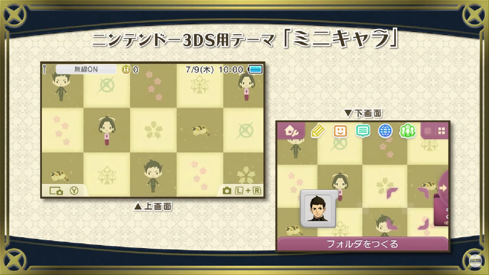 Capcom has a number of 3DS themes lined up for The Great Ace Attorney as part of pre-order bonuses. Videos of each can be found below.