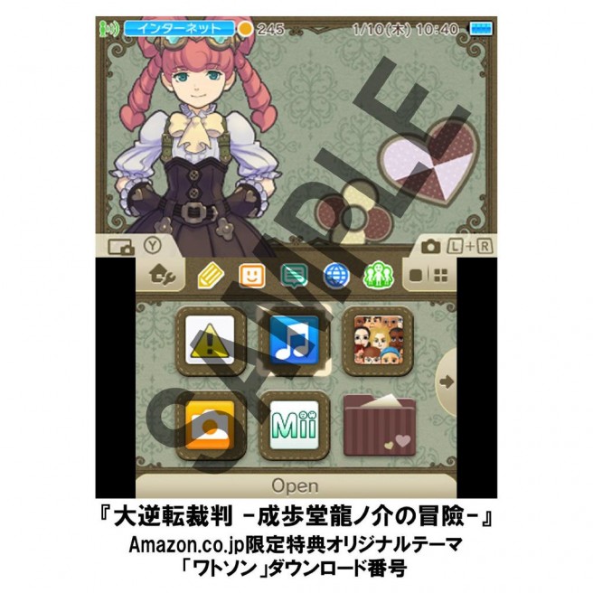 Capcom is preparing a special 3DS theme for The Great Ace Attorney for customers on Amazon Japan. By purchasing the game at the retailer, they’ll receive the theme shown above.