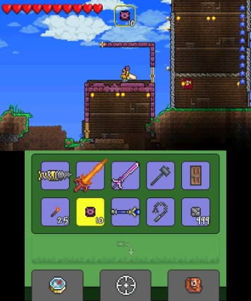 Family Gamer TV put up more off-screen footage of Terraria on 3DS based on the new build. Watch the video below.