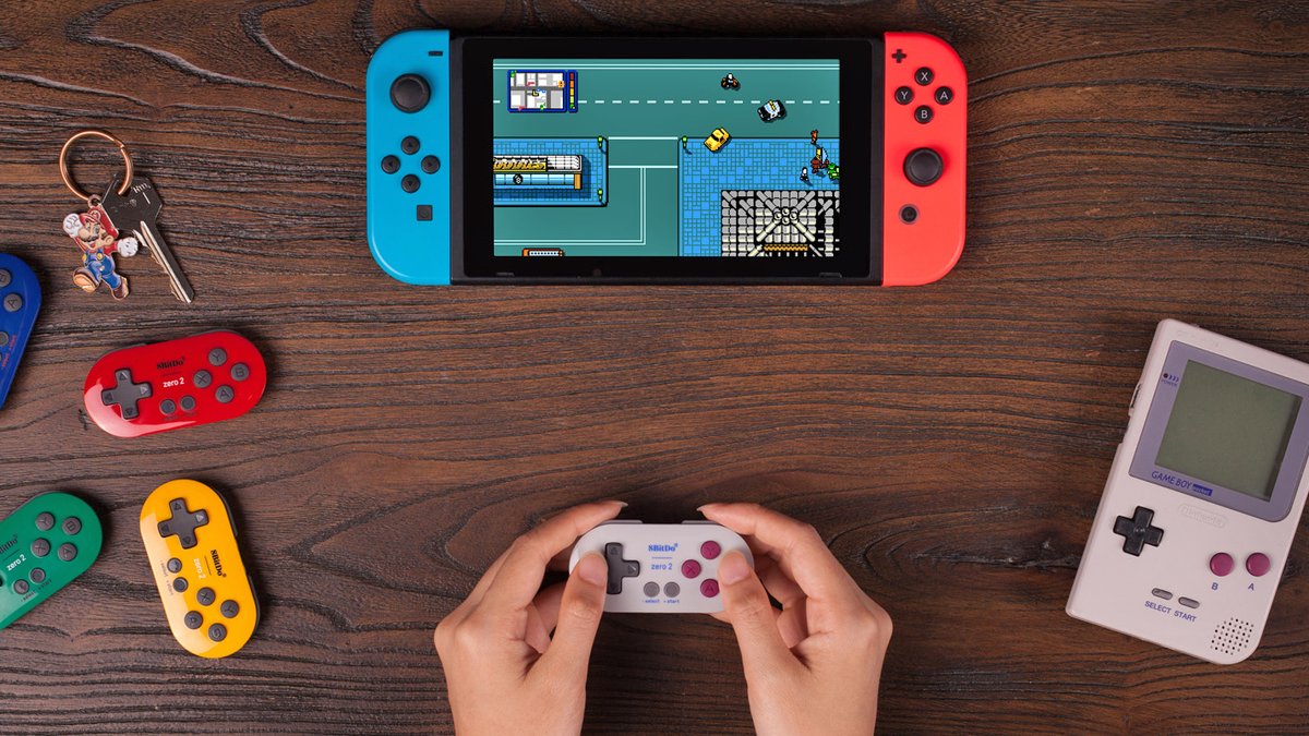 #E32018 Announcement #3: Introducing Zero 2. A fully featured bluetooth controller in keychain size. We redesigned Zero with new features like motion controls and upgradeable firmware. 5 models, inspired by the classic Game Boy line. Compatible with Switch, PC, macOS & Android. pic.twitter.com/w7sHOE3RjA