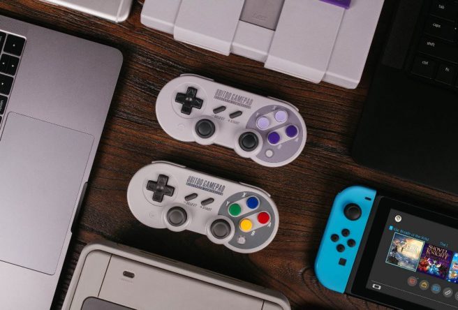 The retro-style controller company 8Bitdo has launched a firmware update for their wireless controllers that makes them compatible with Switch. So now we can buy a wireless SNES controller from them and use it to play Ultra Street Fighter II, for example.