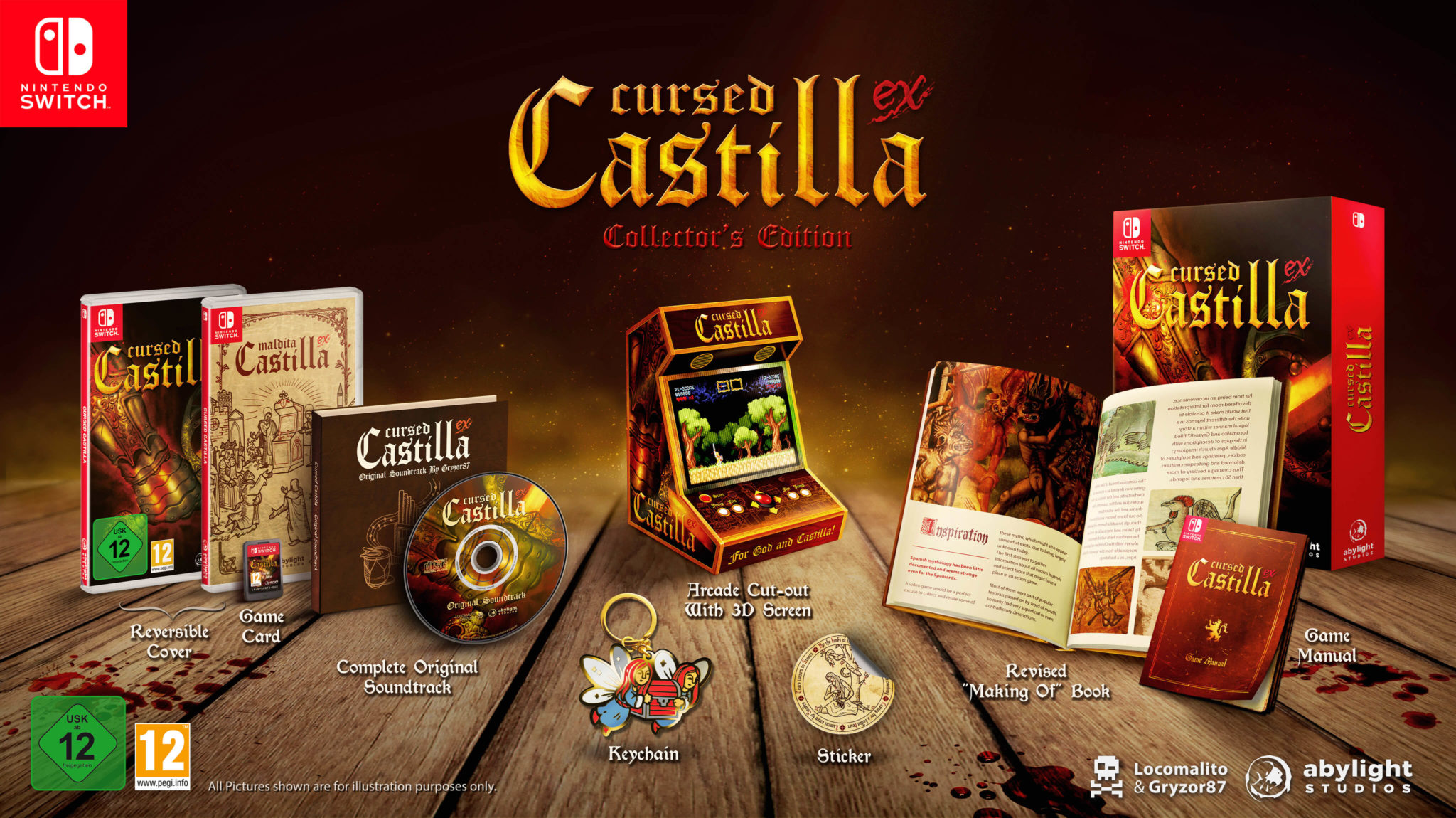 Abylight has revealed a new physical release for Cursed Castilla on Switch, which will be offered in the form of a collector’s edition. It comes with the game cartridge, reversible inlay, manual, soundtrack CD, sticker, making-of book, keychain, and arcade cut-out with lenticular screen.