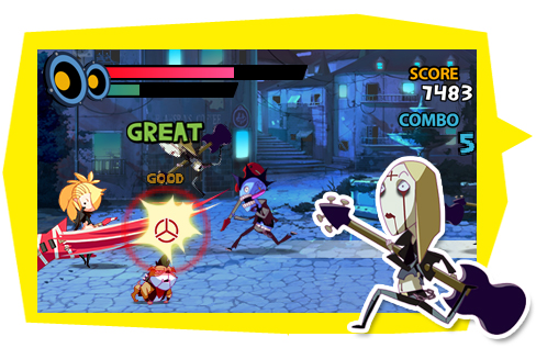“Rock the beat with Radiohammer in this rhythm action romp developed by Arc System Works and Vinyl Lab! Play as the world’s most famous super DJs and protect the peace with the power of love and music! Drop the beat on the bad guys as you shuck and jive your way through hordes of the morally maligned! Time your strikes to make the world a safer, funkier place with your superior sonic skills and impeccable rhythm. Take down massive villains and fend off furious flashers with groovy tunes and masterful mixes.”