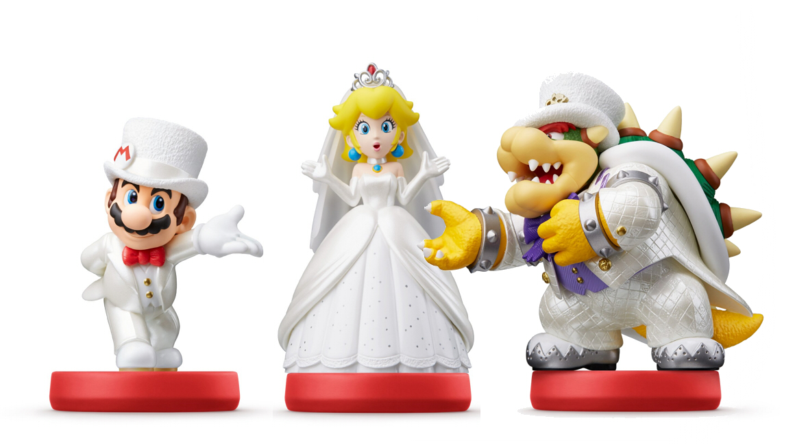 Along with the game itself, Super Mario Odyssey has received three new amiibo. Mario, Peach, and Bowser are all in wedding attire.