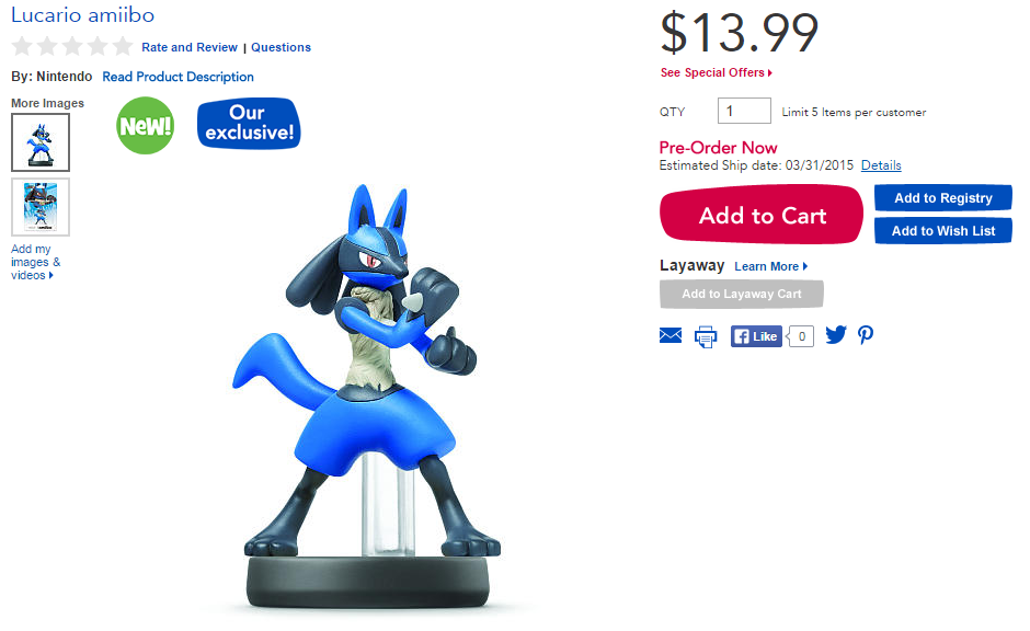 Lucario amiibo is exclusive to Toys “R” Us