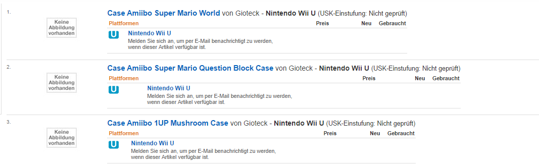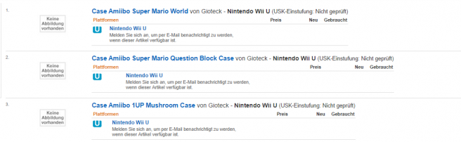 Amazon Germany listing Amiibo cases