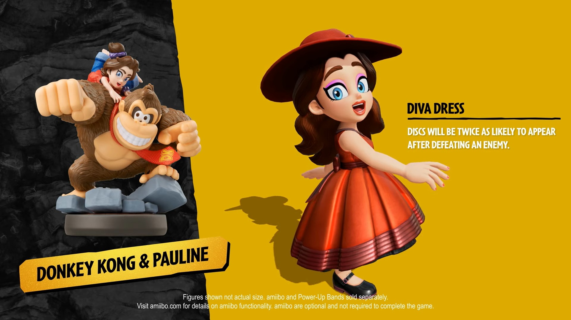 By using the Donkey Kong & Pauline amiibo, you’ll unlock Pauline’s Diva Dress. Discs will be twice as likely to appear when defeating an enemy if you’re using it.
