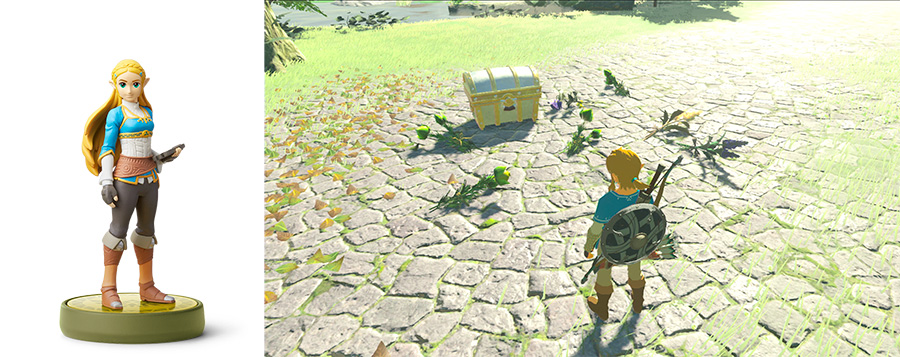 Tapping amiibo from the Smash Bros. line of Zelda amiibo will reward special items from treasure chests. Tapping any other amiibo will result in materials like meat and fruits.