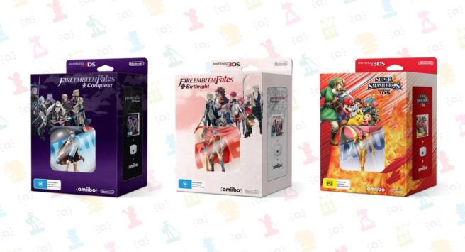 Though they were previously only listed by retailers, the Fire Emblem Fates and Super Smash Bros. for 3DS amiibo bundles have now been officially announced by Nintendo. Currently, they are only announced for Australia and New Zealand, releasing on September 22 for AU$69.95. However, given their European listings, we can expect them to at least release there, and hopefully in other regions. Each bundle includes an NFC reader, a game, and a paired amiibo, with Fire Emblem Fates: Birthright including Ike, Conquest including Marth, and Smash Bros. including Samus.